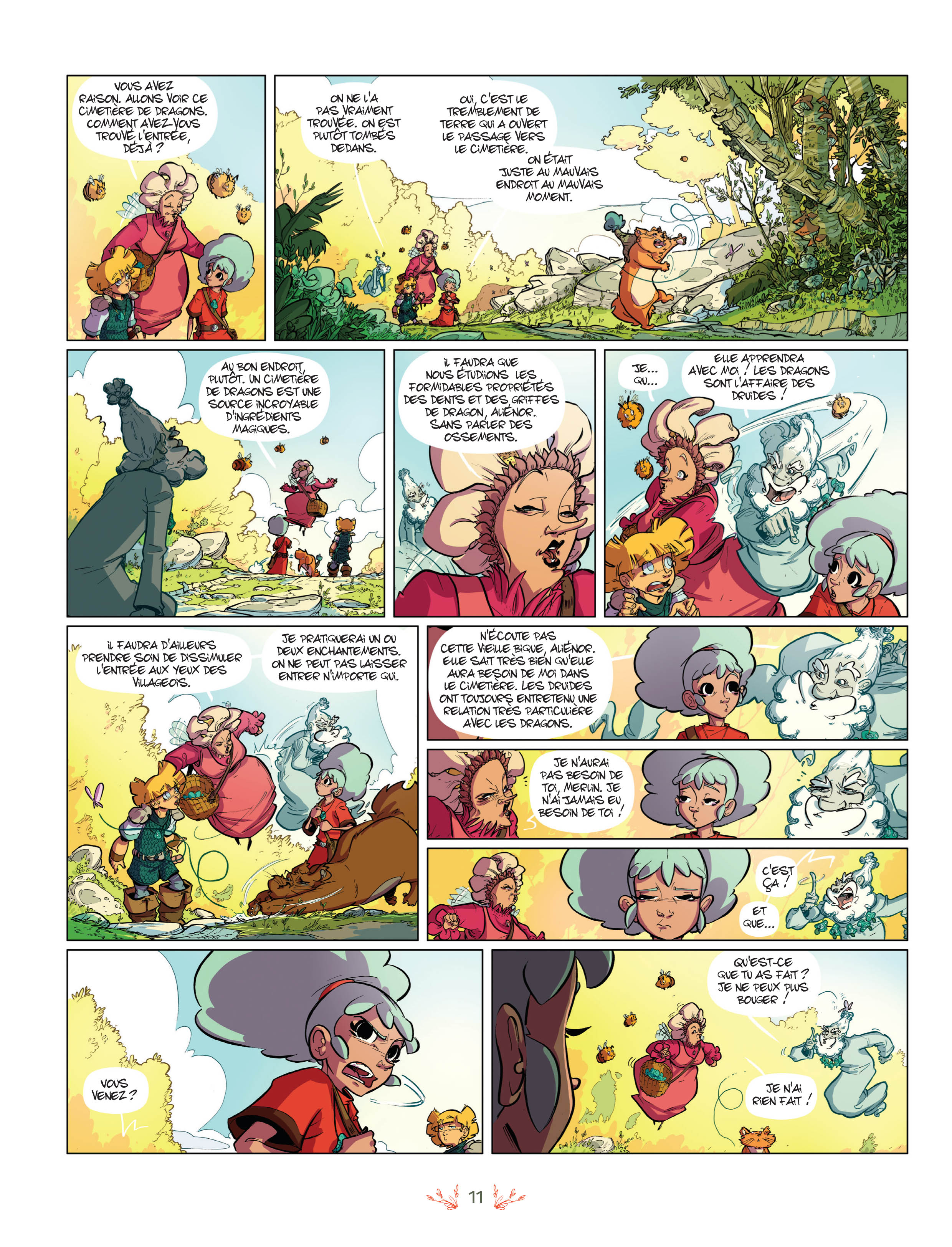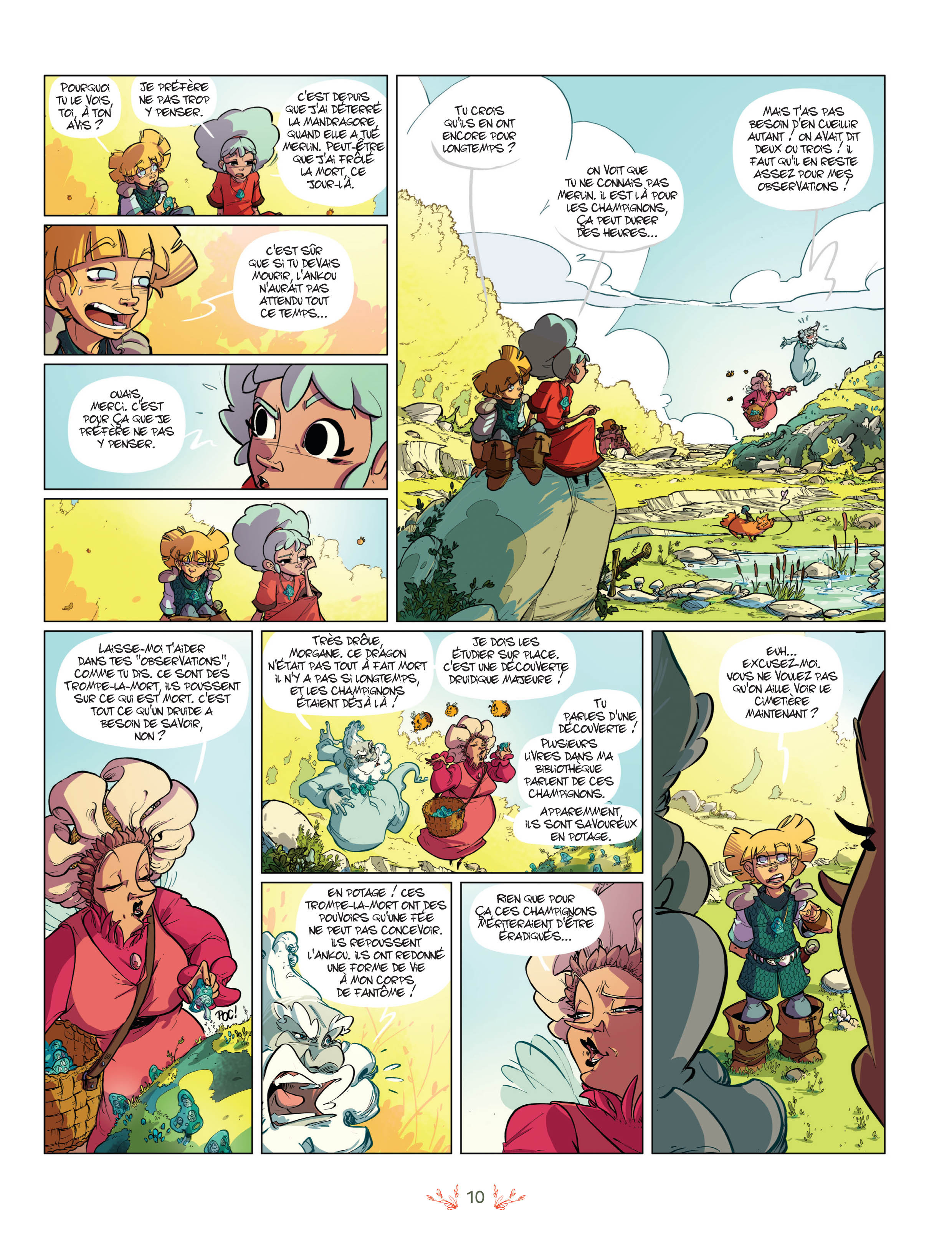 Qu’on se le dise, Merlin n’est pas mort ! D’ailleurs, équipé de ses fameux champignons trompe-la-mort, il espère bien tromper l’Ankou un bon moment. Mais celui-ci a plus d’un tour dans son sac et pétrifie d’un sort Merlin et Morgane, toujours en train de se chamailler, à défaut de pouvoir tuer Merlin. Aliénor et Lancelot vont devoir venir à leur rescousse et, pour cela, aller affronter l’Ankou dans son domaine, dont l’un des étangs débouche, dit-on, sur les portes de l’enfer…