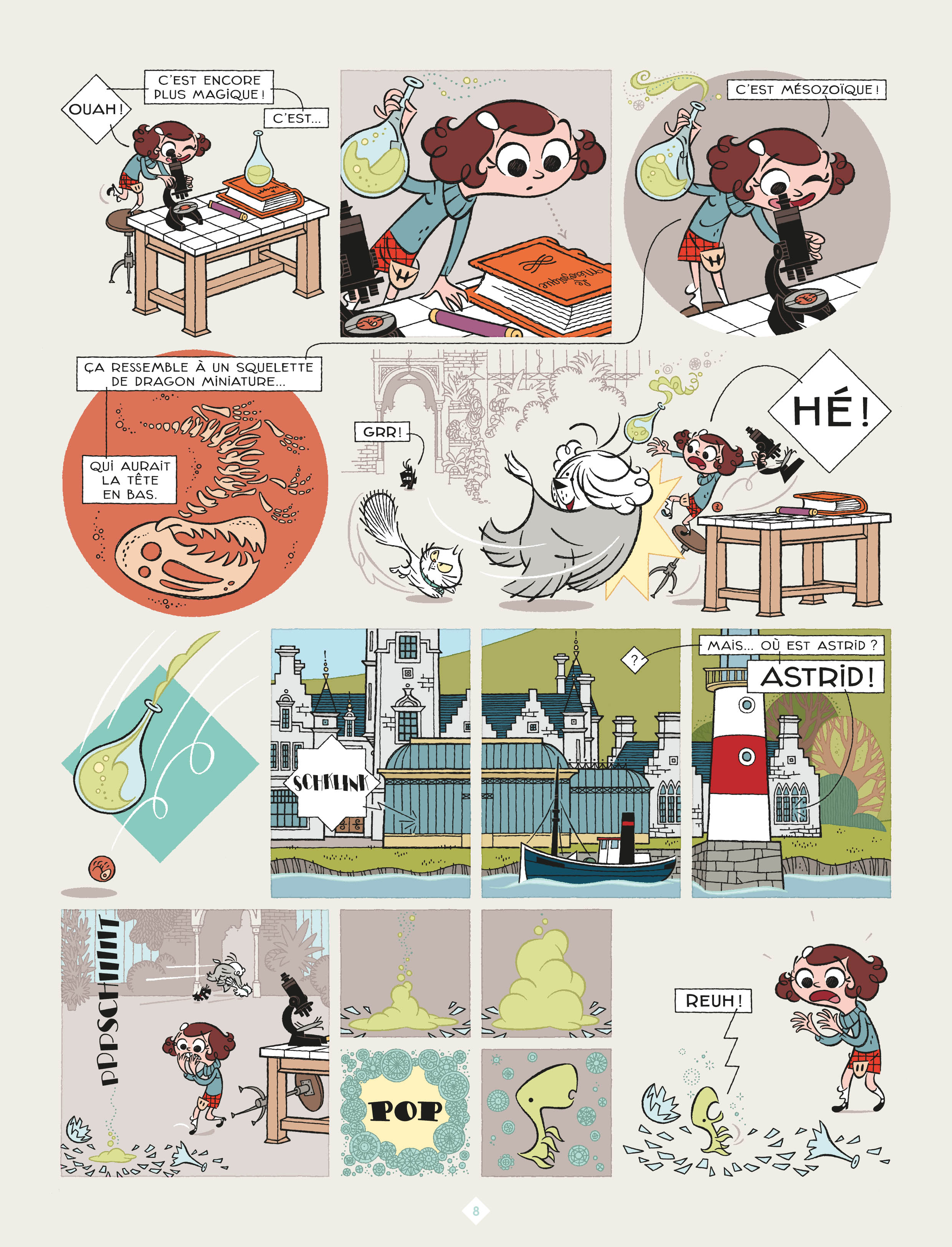 Un beau matin, Mme Bromure (Pandora de son prénom) reçoit un courrier de son frère Hazel l’invitant à passer quelques jours en Ecosse pour enfin lui confier la boîte à souvenirs familiale. Alors que son mari lui précise qu’il a des choses plus sérieuses à faire que d’aller sur place, Mme Bromure accompagnée de Melle Poppyscoop, Mme Dottie et Astrid, décide de prendre la route, pour les Highlands. Astrid y fait la connaissance de son excentrique et savant fou d’oncle. Le laboratoire de son manoir, cache toutes sortes d’expériences et d’espèces vivantes, Astrid ne tarde pas à y faire un tour et à libérer par accident, un bébé plésiosaure dont la croissance devient incontrôlable. L’animal devient créature et se cache dans les profondeurs du Loch. La solution ? Le capturer et le passer dans la machine lyophilisante et rajeunissante de l’oncle Hazel bien sûr !