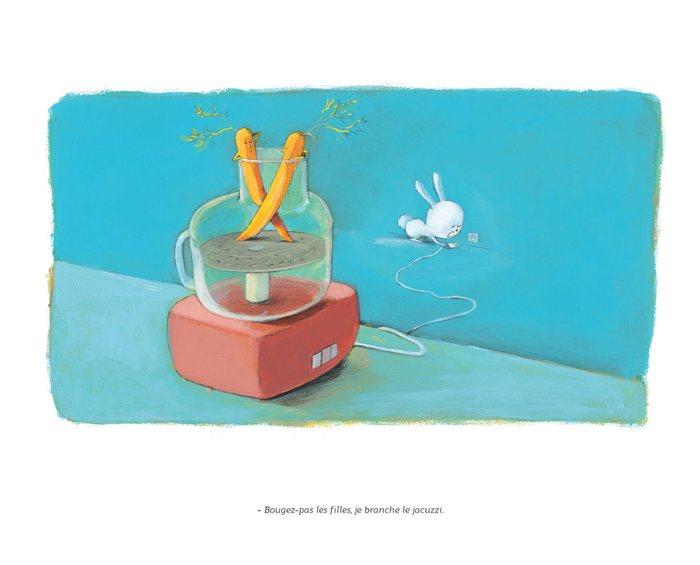 Derrière la tendresse du dessin, on découvre un Olivier Tallec à la plume piquante et réjouissante.