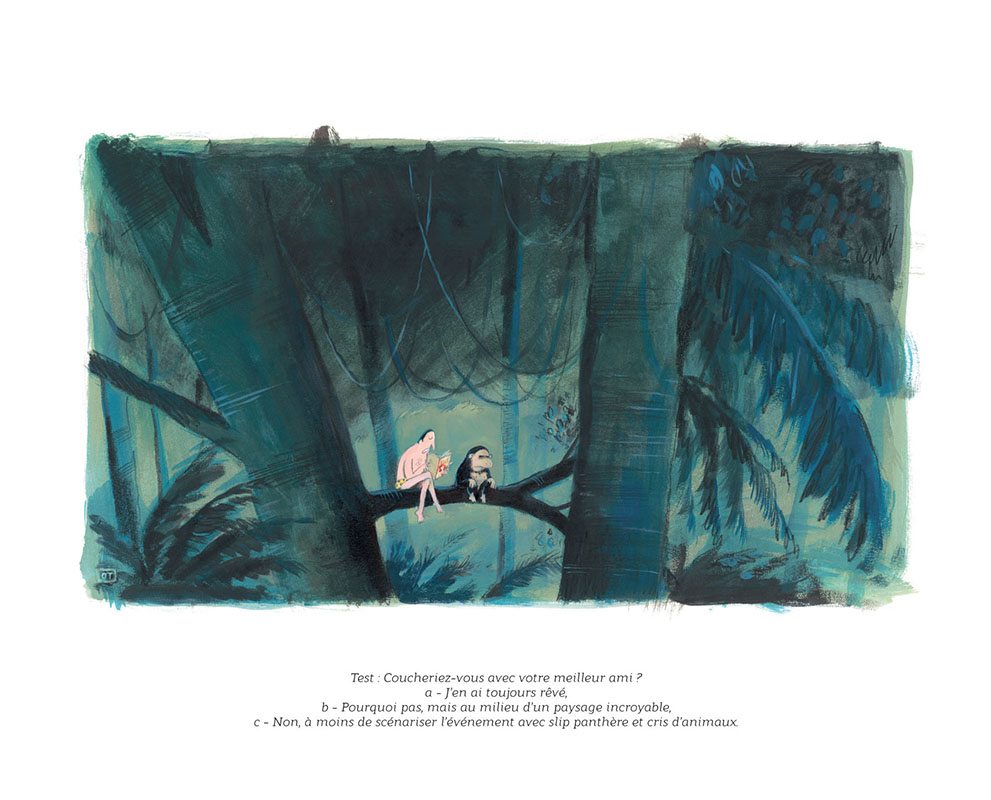 Olivier Tallec nous emmène dans les situations des plus cocasses au travers le temps et l'espace. Depuis la préhistoire à la savane ou au pôle nord, en passant par la vie quotidienne des superhéros, tout est prétexte à l'ironie.
