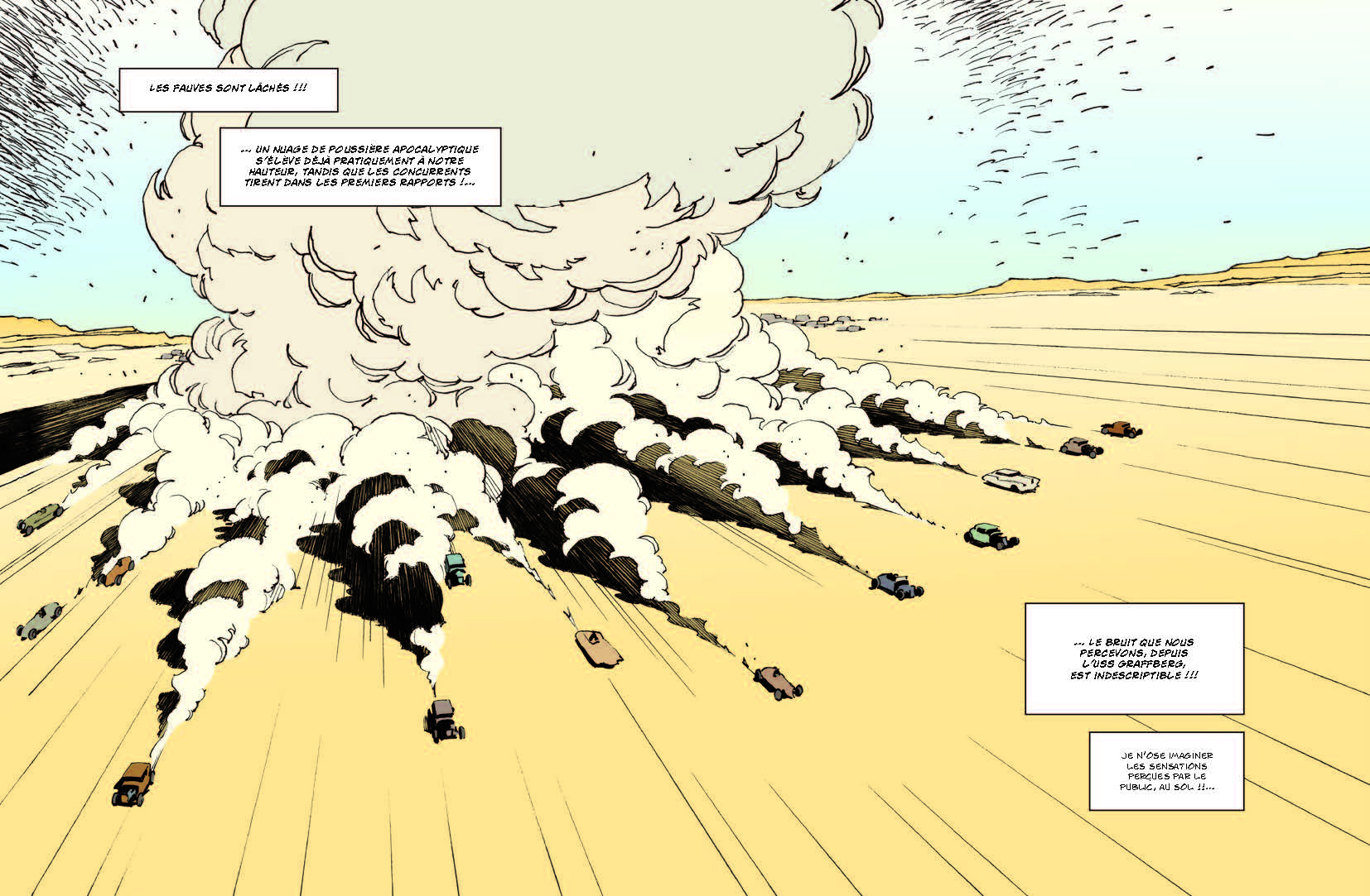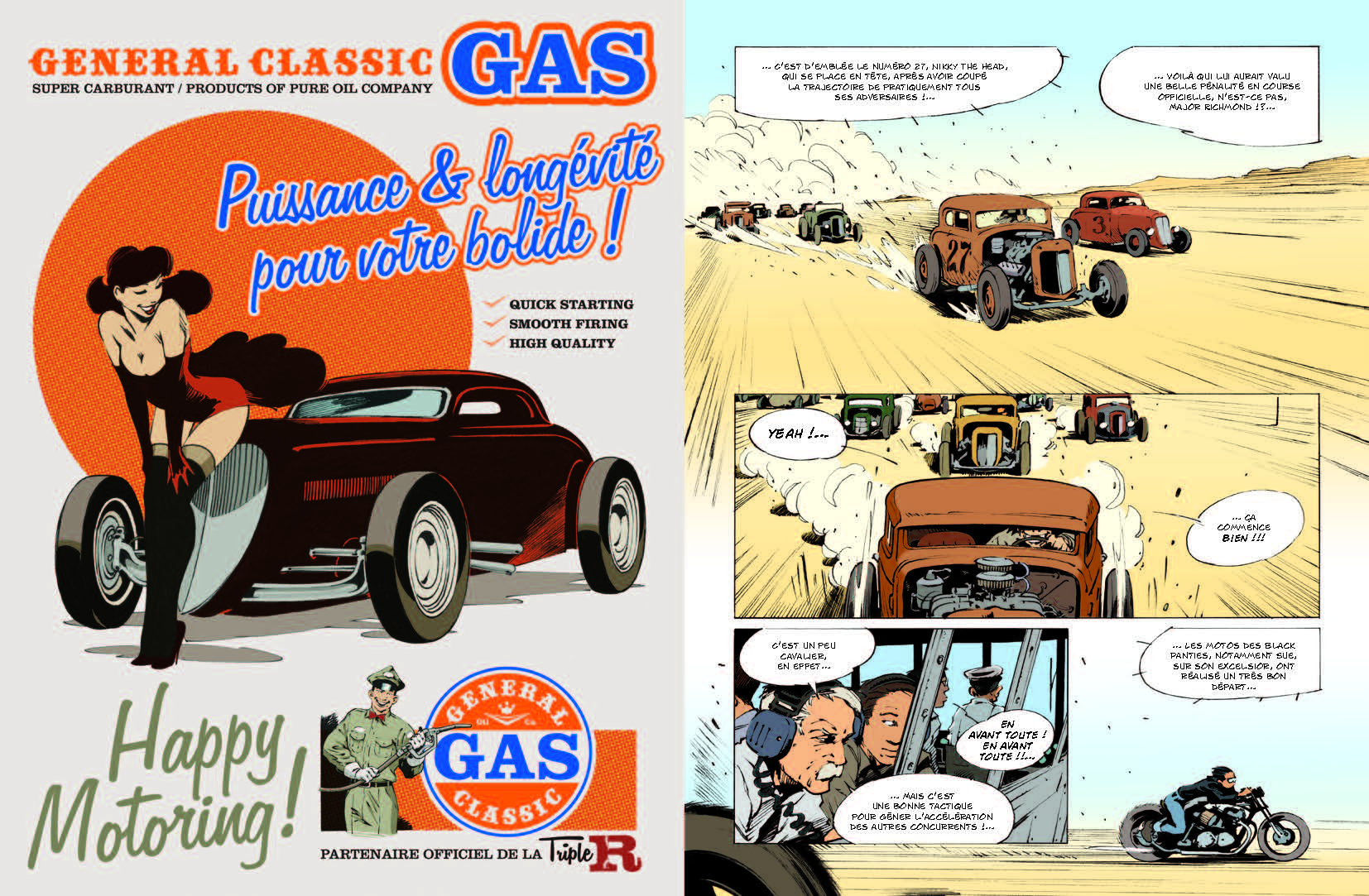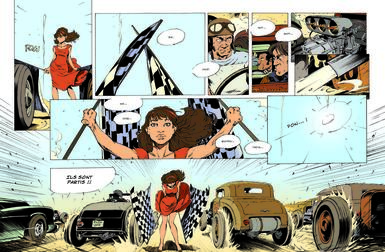 Lorsque Billy Joe poussera la porte de la station service chez les O’Neil (père et fille), plus rien ne sera comme avant. Cuir, santiags, carabine et Ford V8, le chef des Red Noses attend du monde pour ce qui va devenir la plus grande course sauvage de tous les temps. Une course, jusqu’à la mort… Parmi les quarante enragés alignés au départ : Billy Joe, le chef du gang des Red Noses ; Nikky ‘The Head’ le miraculé ; Calamity, l’extravagante star du rock ; les mystérieux frères Jarret ; William Boney dit ‘le Kid’ ; la sulfureuse Sue, du gang des Black Panties ; et enfin, au volant de la mythique Black Widow, la jeune Cristal O’Neil… Tous sont prêts à en découdre… Les médias se sont emparés de l’événement, les autorités, dépassées, n’ont pu contenir le flux de centaines de curieux venus assister au run du siècle. Tout le monde est là, les yeux rivés sur les drapeaux. Les moteurs chauffent, la tension monte… Le vieil O’Neil a parié : la station Lisa Dora est en jeu…