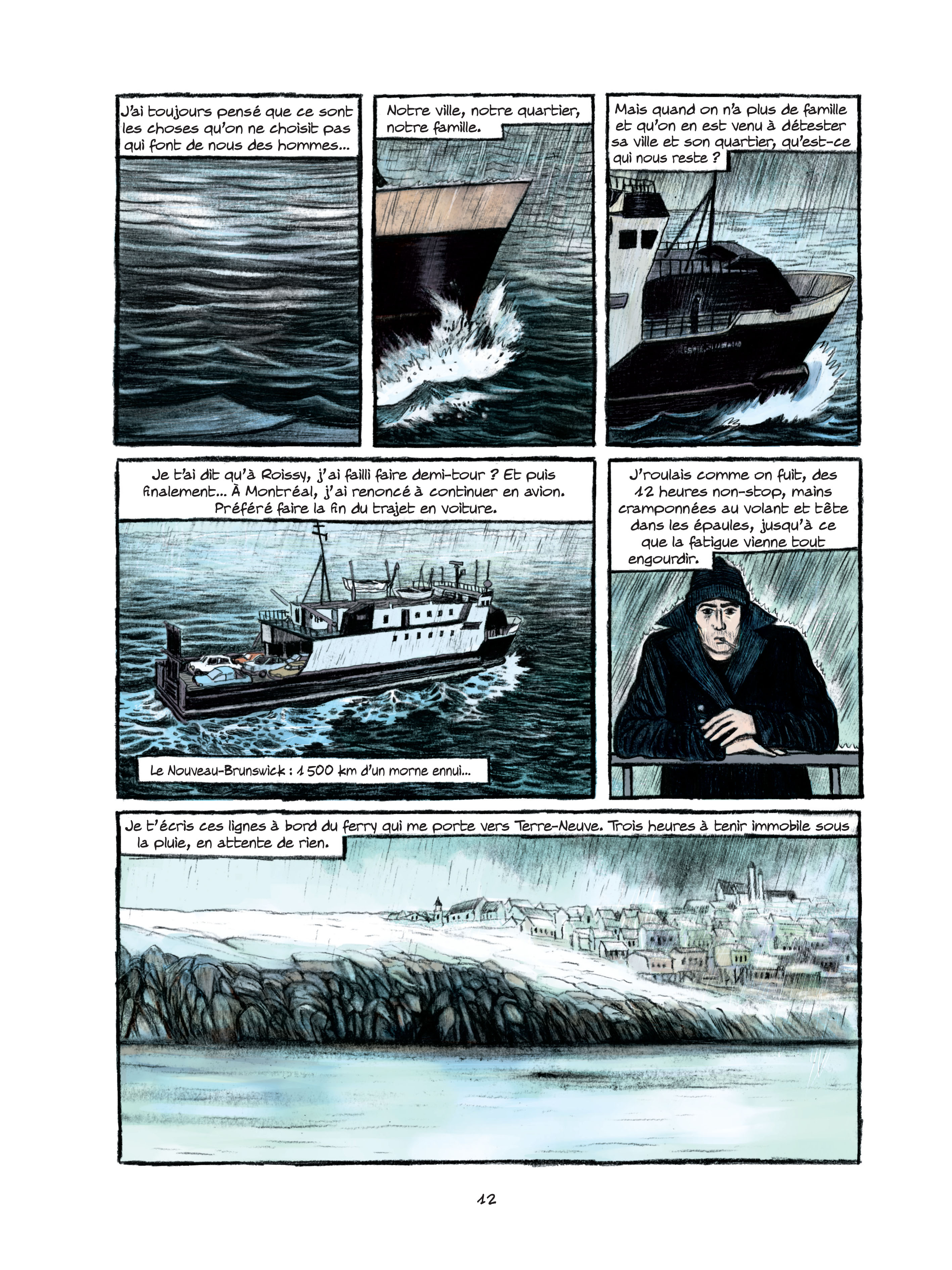 Josh, petite trentaine baroudeuse et tatoué, a récemment quitté la marine. Sac au dos, il trace sa route à travers la campagne de l’île de Terre-Neuve. Le climat y est rugueux, comme la vie sur place. Il part à la recherche de son père qui s'y est installé et a disparu, à défaut d’affronter ses fantômes. à moins que Ruthie-Jane, qui semble plus douée pour la vie que lui, ne le pousse à se rechercher lui-même. Mais les brumes sont tenaces en Terre-Neuve, et la route toujours tentante.