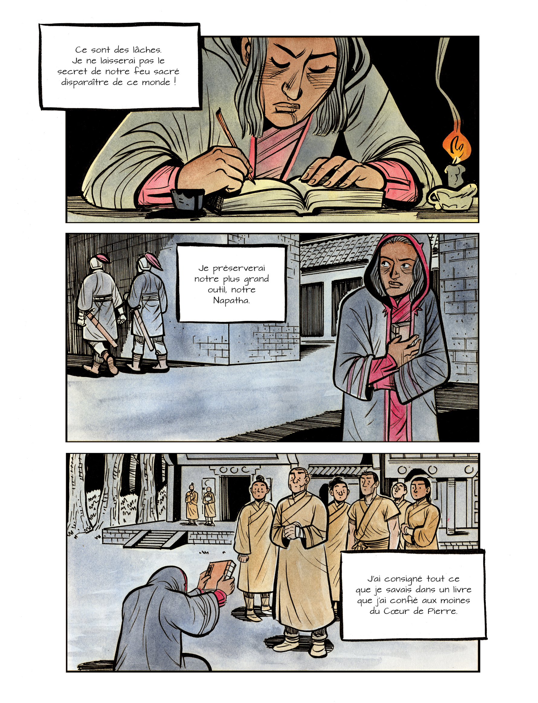 Devenu général de Toutes-Lames après son coup d'État, Erzi détient également la formule du napatha, le feu destructeur des bâtisseurs de la Cité sans Nom. Le jeune homme en fait immédiatement usage contre l'armée yisun venue assiéger la Cité. Kaidu et Rate, impuissants face à cette démonstration de force, ont pourtant pris leur décision : quoi qu'il en coûte, ils arracheront la formule du napatha des mains d'Erzi. La tâche ne sera pas aisée, d'autant que l'énigmatique Mura se dresse sur leur chemin...
