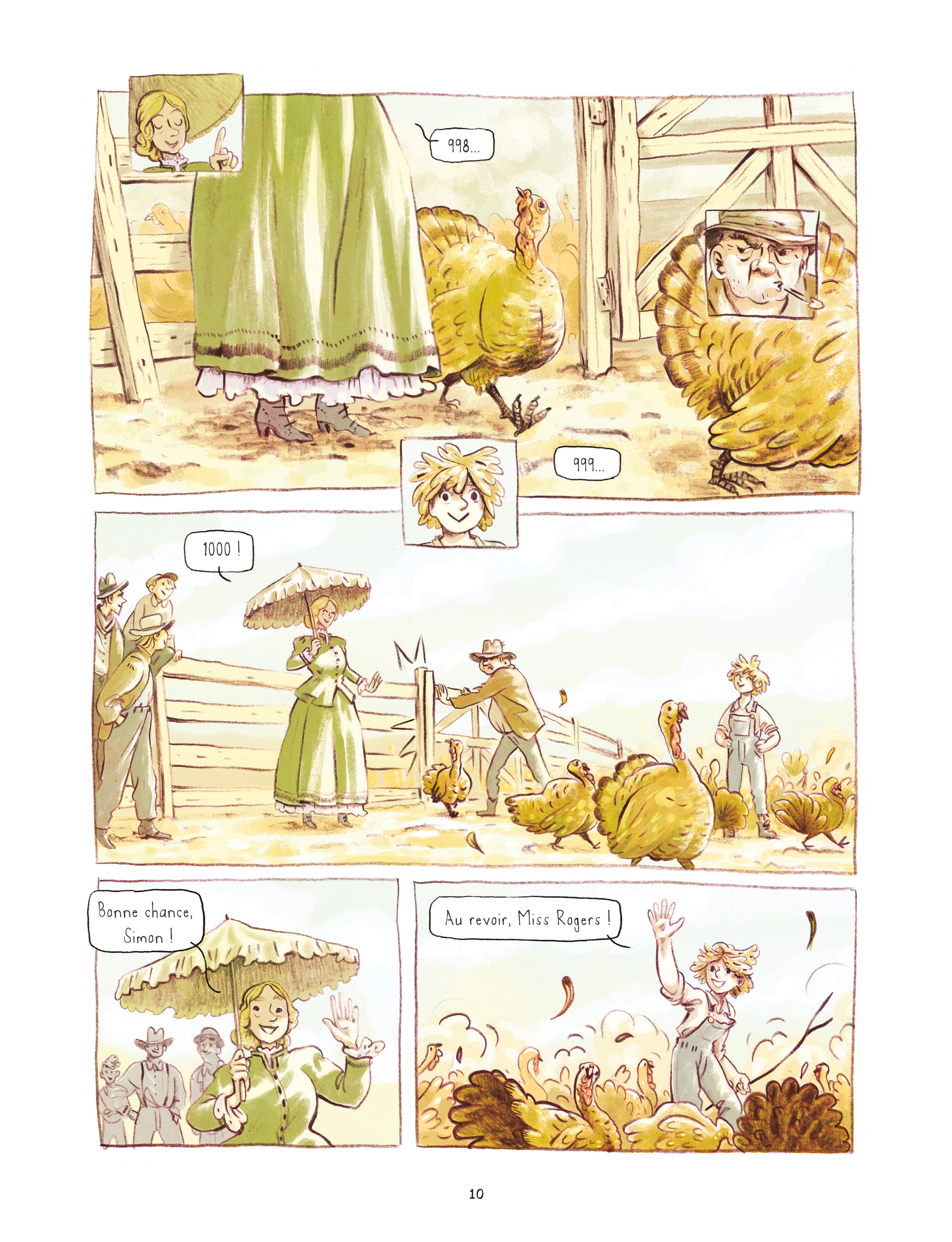 Missouri, été 1860. Après avoir quadruplé son CE1 à 15 ans, Simon diplômé d’office par Miss Rogers se voit refuser l’entrée en CE2 et doit gentiment déployer ses ailes. Aussi, le soir même de cette mauvaise nouvelle, lorsqu’il apprend que les dindes sur pattes valent 20 fois plus à Denver que chez lui, il décide d’acquérir 1000 têtes pour les convoyer sur 1000 kilomètres et prouver ainsi qu’il a le sens des affaires. Il recrute pour l’escorter une équipe improbable avec laquelle il va devoir traverser le désert, affronter les rocheuses et négocier avec les Indiens ! Ces derniers accepteront-ils de laisser passer cette étrange caravane qui doit atteindre Denver pour y faire fortune ?