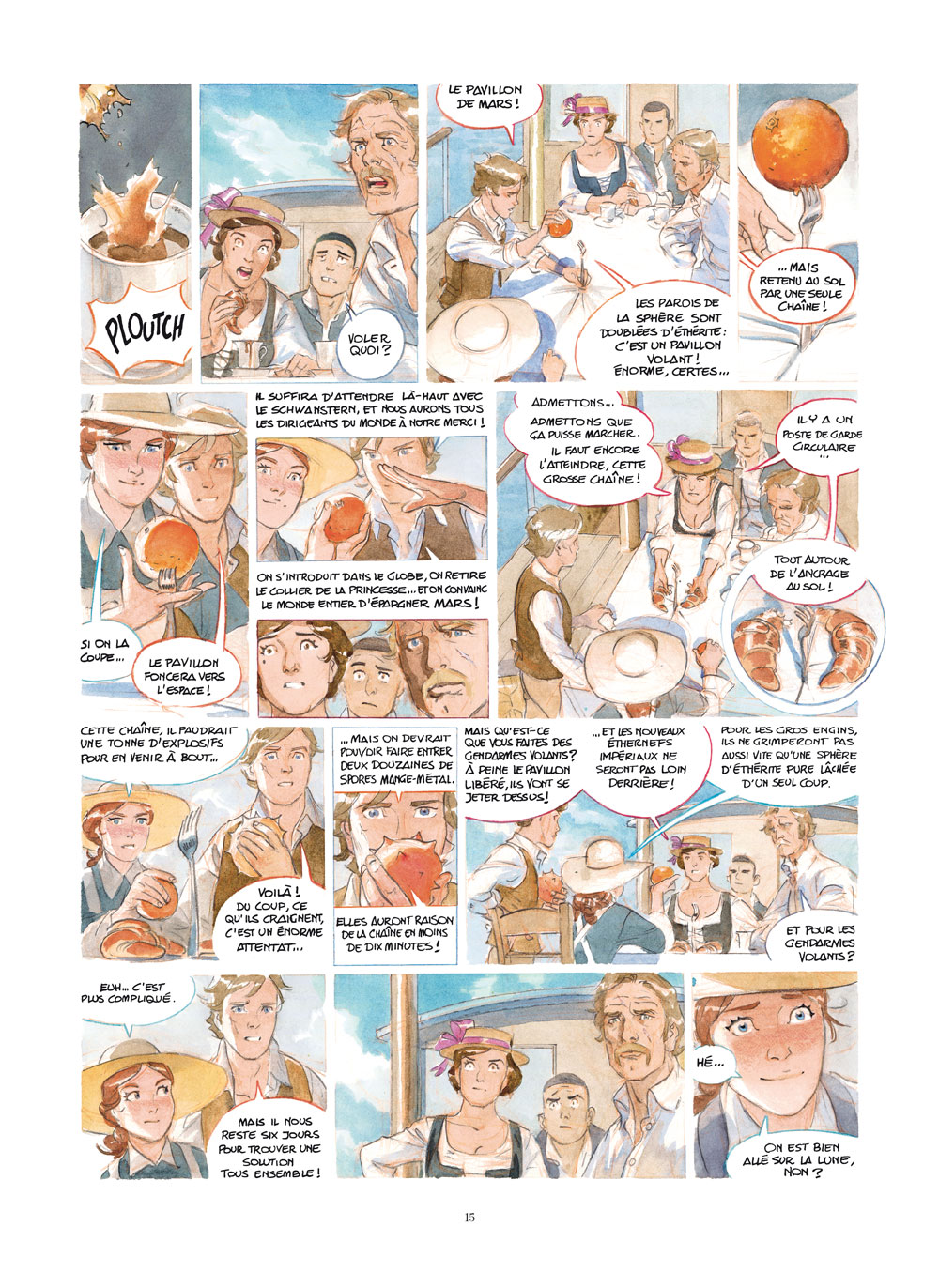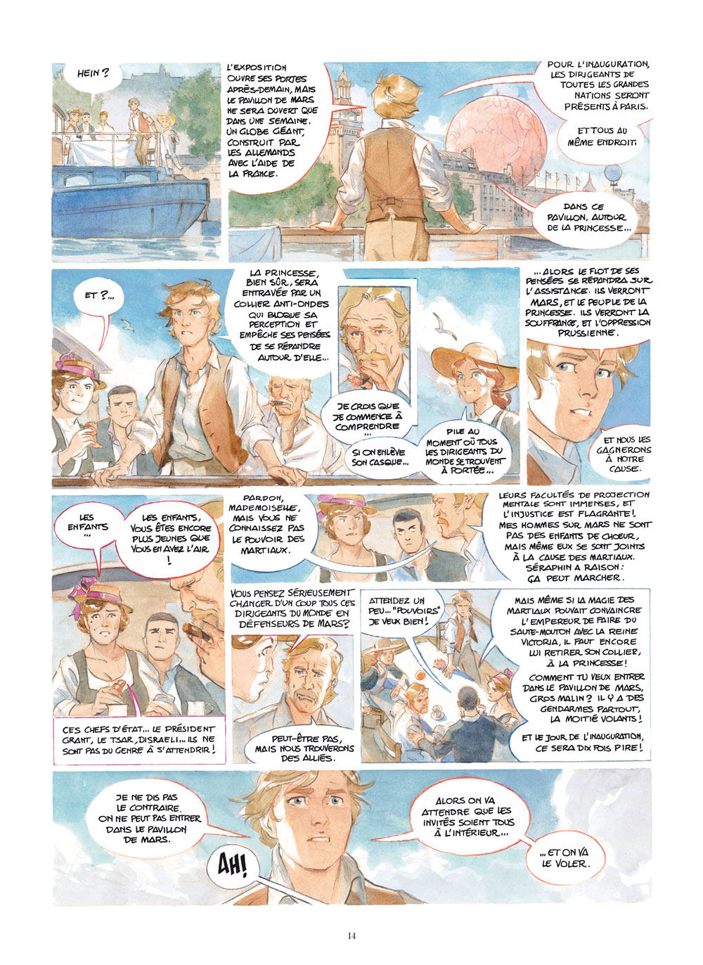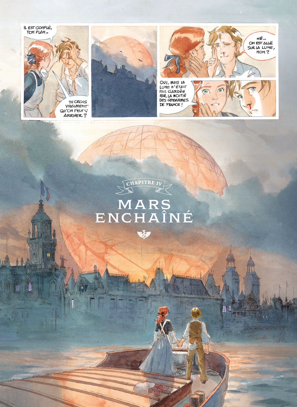 Après avoir visité la Lune et Mars, Les Chevaliers de l’Ether semblent tristement cloués au sol depuis l’échec de leur tentative visant à convaincre l’Empereur Napoléon III de secourir les Martiaux. Le jeune Séraphin a été jeté en prison, et la Princesse de Mars est détenue pour être exhibée lors de l’Exposition Interplanétaire qui doit s’ouvrir à Paris, le 25 avril 1875 en présence de leurs Majestés les Empereurs de France et d’Allemagne.