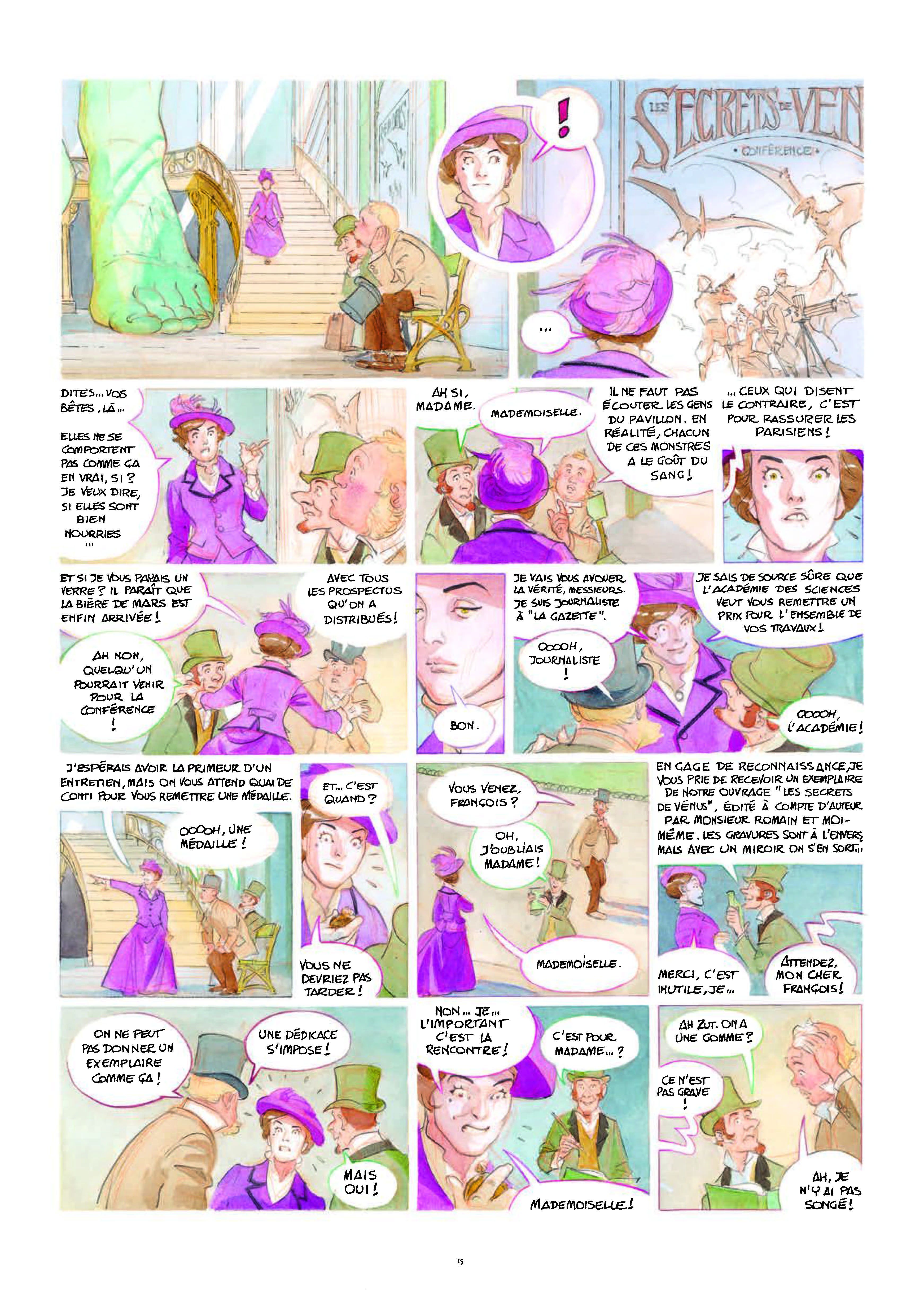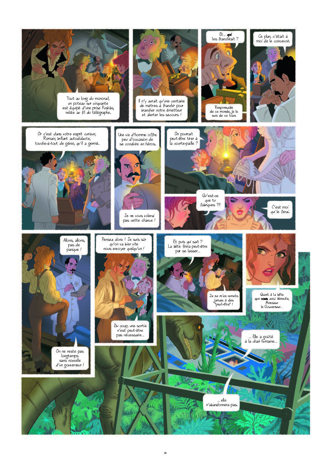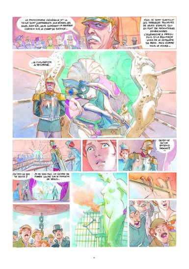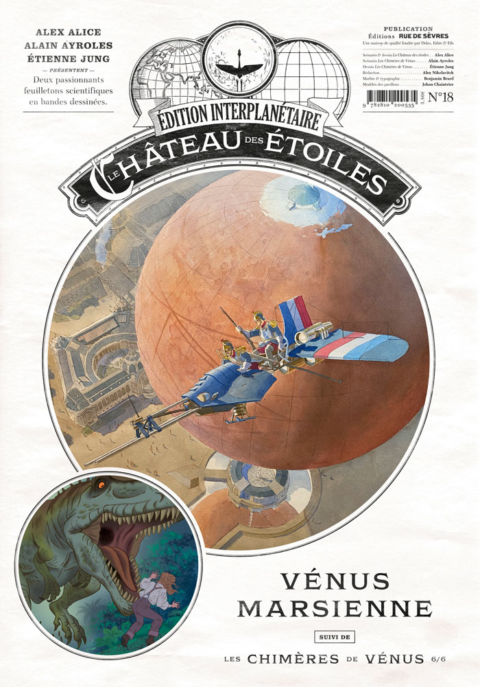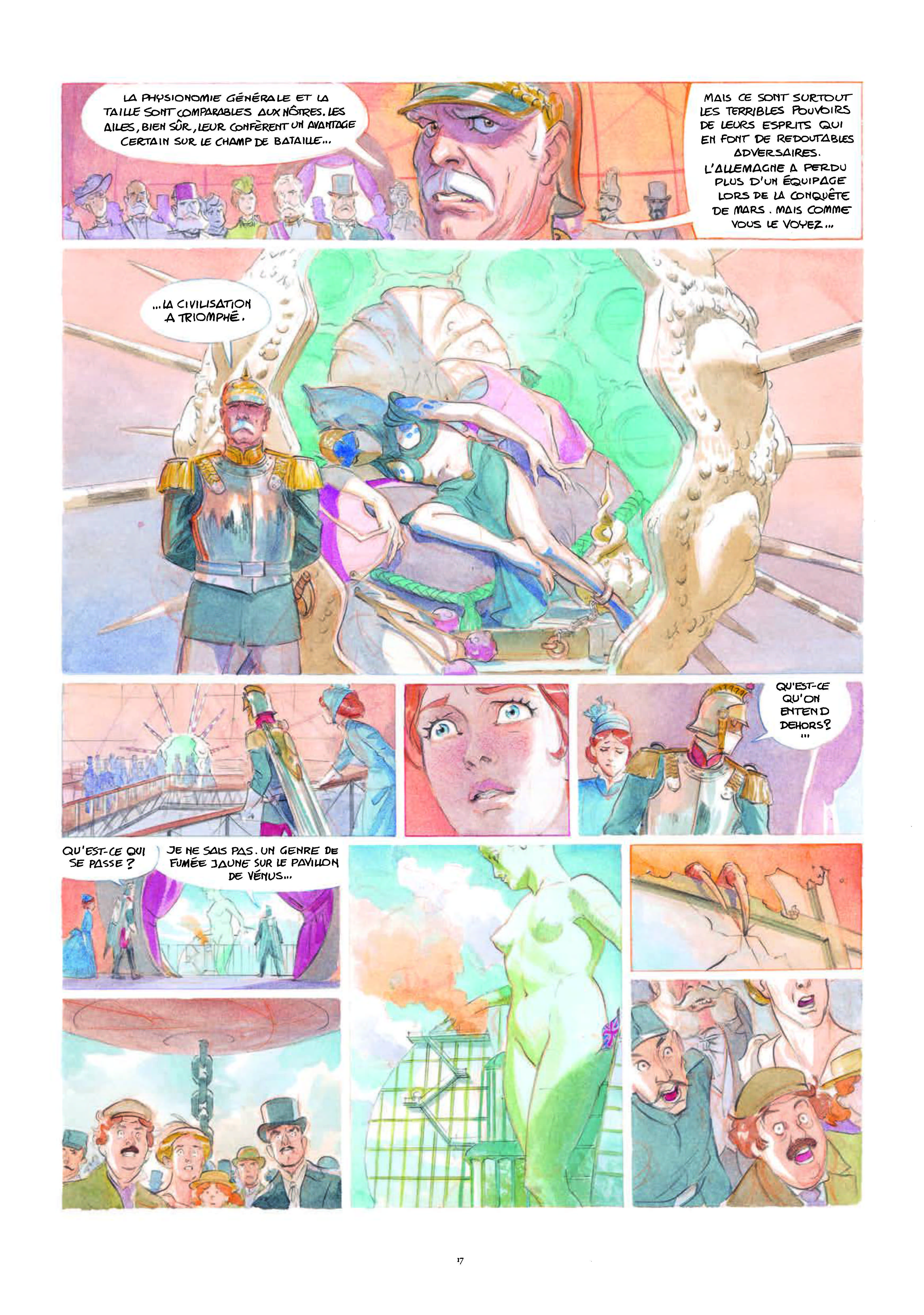1874, dans l’univers du Château des étoiles. La conquête de l’espace a commencé depuis cinq ans et les puissances terrestres colonisent le système solaire. France et Angleterre se disputent la souveraineté de Vénus. Conformément à l’imaginaire scientifique de l’époque, il s’agit d’un monde-jungle couvert de brume, où la vie est encore à un stade primordial. C’est là que débarque Hélène Martin, actrice d’opéra-bouffe à la recherche de son fiancé, le poète Aurélien d’Hormont, évadé des bagnes de Napoléon III. Poursuivie par l’inquiétant duc de Chouvigny, entraînée dans la rivalité des empires, Hélène s’aventurera à travers des jungles infestées de dinosaures et sur des océans déchaînés jusqu’aux plus étranges confins de l’astre, où se dressent encore les vestiges d’une mystérieuse civilisation.