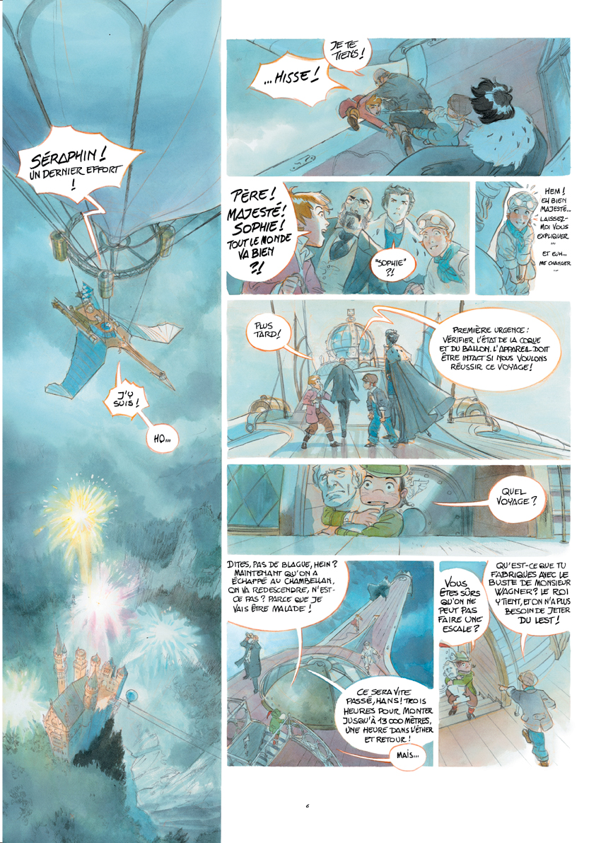 Nos héros, qui ont échappé de justesse aux hommes de Bismarck en embarquant dans l'éthernef, voient le château s'éloigner sous leurs yeux au fil de leur montée dans le ciel. Les voici sur le point de prouver leur théorie, franchir le mur de l'éther et découvrir l'espace mystérieux et infini. Une avarie va faire de leur rêve le plus fou une réalité, les forçant à se poser sur la face cachée de la Lune. Si le père de Séraphin fera tout pour les ramener vivants sur Terre, le Roi semble caresser d'autres espoirs tandis que Séraphin, lui, veut en savoir plus sur la disparition de sa mère. La conquête de l'espace s'arrêtera-t-elle à ce premier vol ?