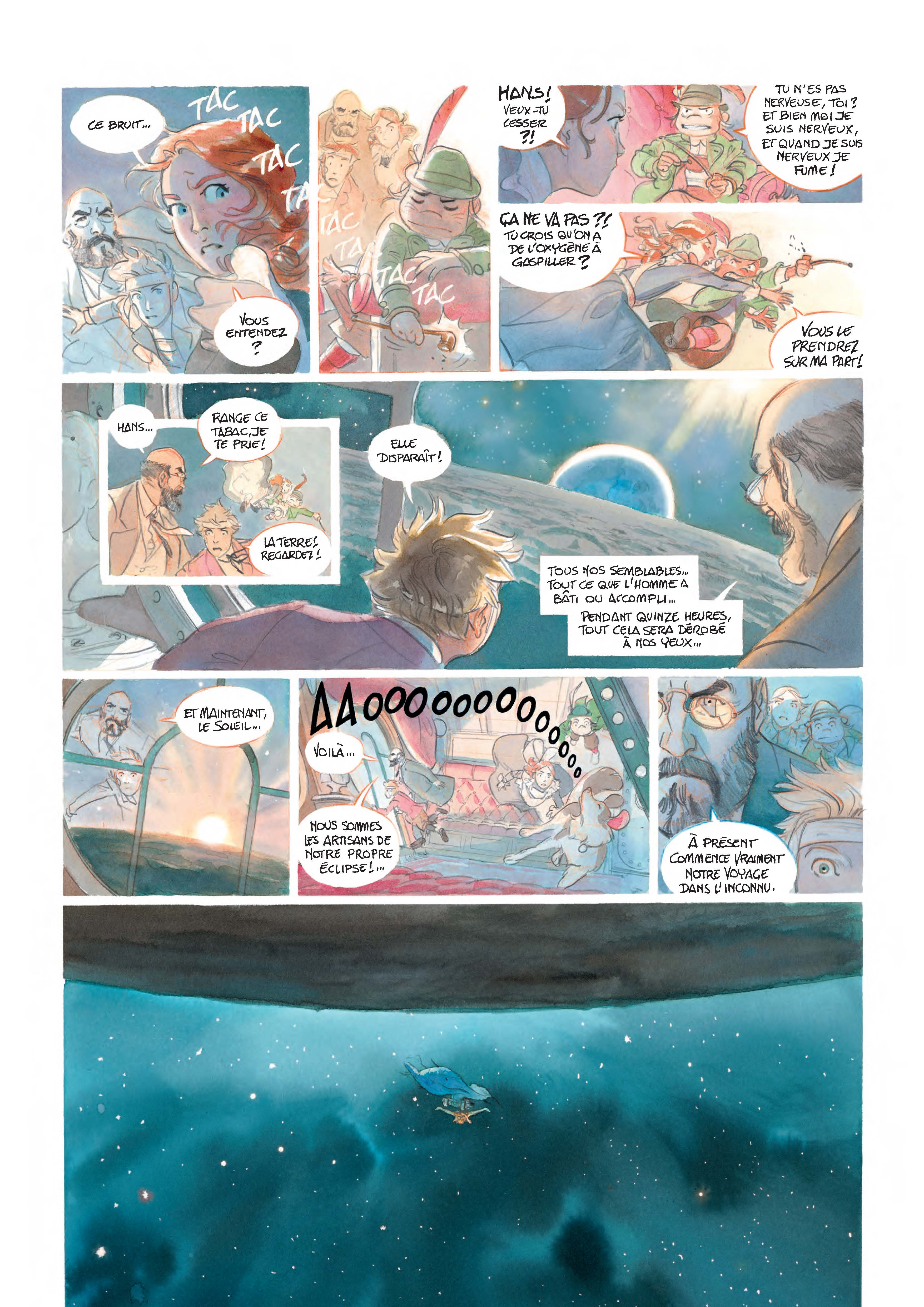 Nos héros, qui ont échappé de justesse aux hommes de Bismarck en embarquant dans l'éthernef, voient le château s'éloigner sous leurs yeux au fil de leur montée dans le ciel. Les voici sur le point de prouver leur théorie, franchir le mur de l'éther et découvrir l'espace mystérieux et infini. Une avarie va faire de leur rêve le plus fou une réalité, les forçant à se poser sur la face cachée de la Lune. Si le père de Séraphin fera tout pour les ramener vivants sur Terre, le Roi semble caresser d'autres espoirs tandis que Séraphin, lui, veut en savoir plus sur la disparition de sa mère. La conquête de l'espace s'arrêtera-t-elle à ce premier vol ?