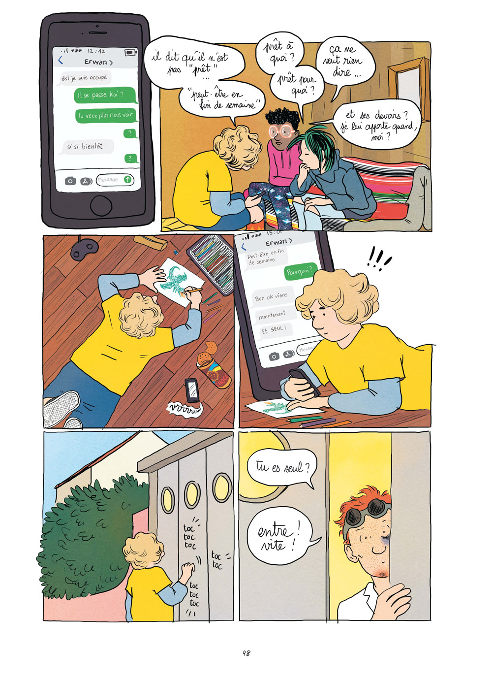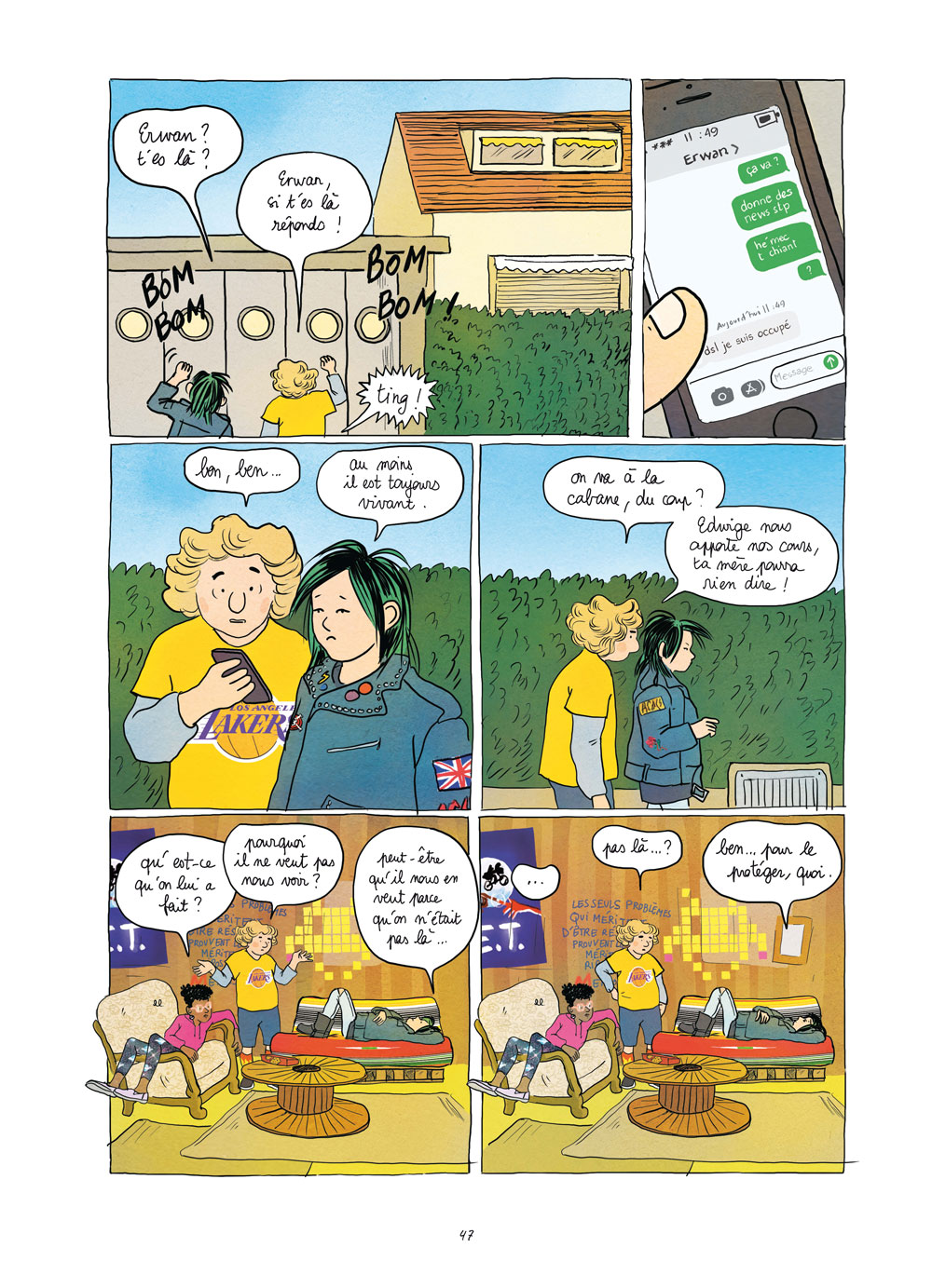 Cati Baur scrute le petit monde de Martin Page avec son œil de lynx, son humour et la tendresse de son dessin. Un album à conseiller à ceux qui trouvent que la vie est nulle, que grandir ça craint, mais qui croient aux super pouvoirs de la solidarité et de l'amitié !