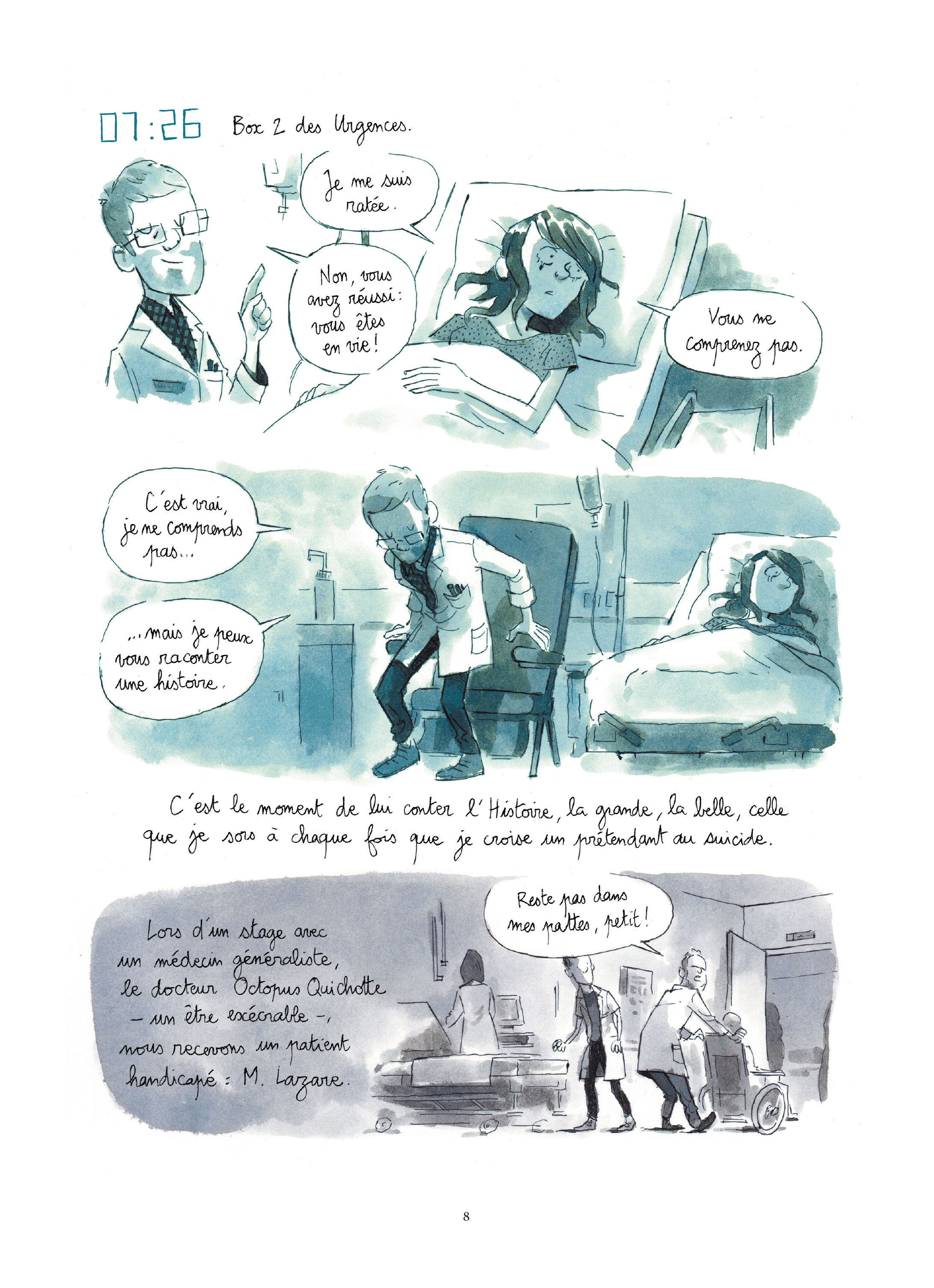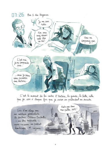 Baptiste est interne dans un service d’urgences. Celle qu’il surnomme la femme oiseau de feu voit ses jours comptés alors que son fils est coincé en Islande par un volcan au nom imprononçable. Baptiste n’a plus qu’un but, aider sa protégée à tenir jusqu'au retour de son fils. Pendant 7 sept jours, les journées du jeune interne sont rythmées par les moments qu’il passe à son chevet, à lui raconter toutes les vies de l’hôpital : les joies et peines des patients, les farfelus, les plus touchants, mais aussi la vie des internes et des infirmiers, leurs routines, leurs découragements, leurs amours parfois. Un témoignage rare et incroyablement touchant sur la terre méconnue mais essentielle que sont les urgences. Incontournable.