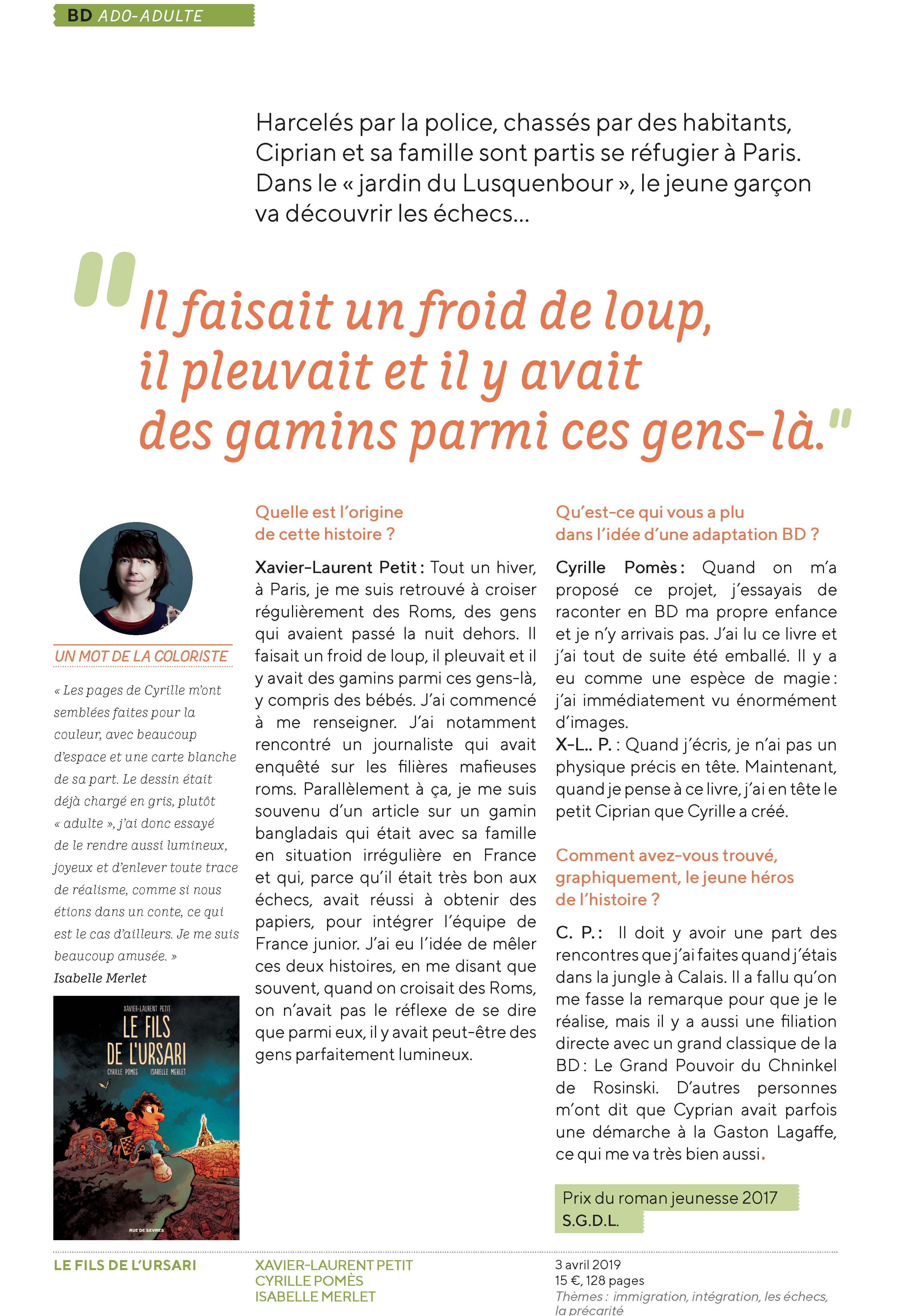 Relations presse (France et Suisse) : dsibilet@ecoledesloisirs.com
